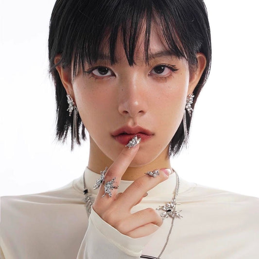 • Biochemical Butterfly Ear Clip Silver Earrings for Women Integrated Ear studs