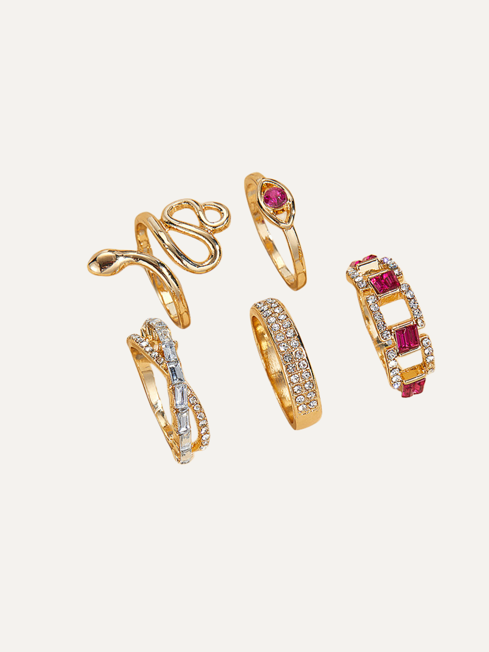 5-Piece Diamond Snake Gold Ring Set Gifts For Women