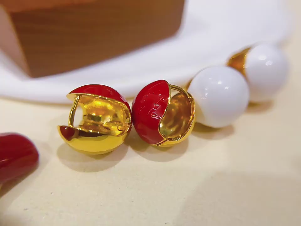 The circular shape of the earrings creates a classic and timeless look that can be worn with any style. The red circular earrings are a bold and striking choice, adding a touch of glamour and drama to your look.On the other hand,the white circular earrings are a more subdued and understated choice, adding a touch of elegance and simplicity to your look.