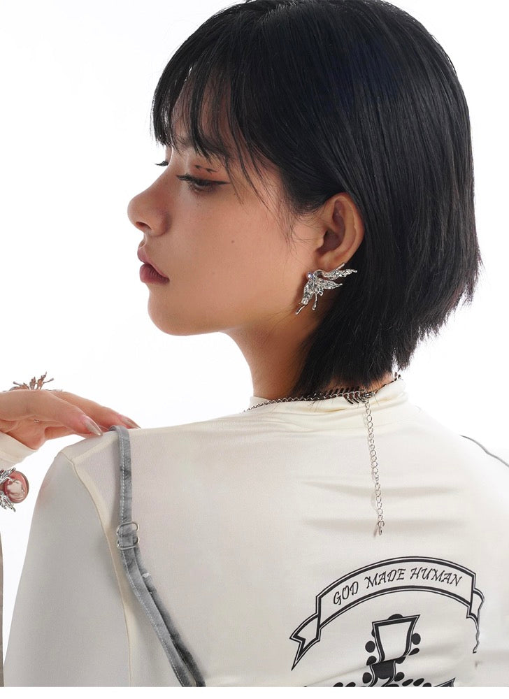 Biochemical Butterfly Silver Earrings for Women Asymmetric Earrings