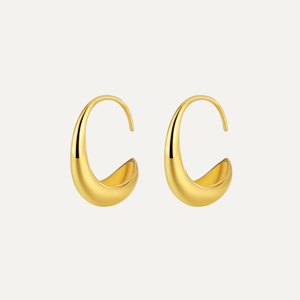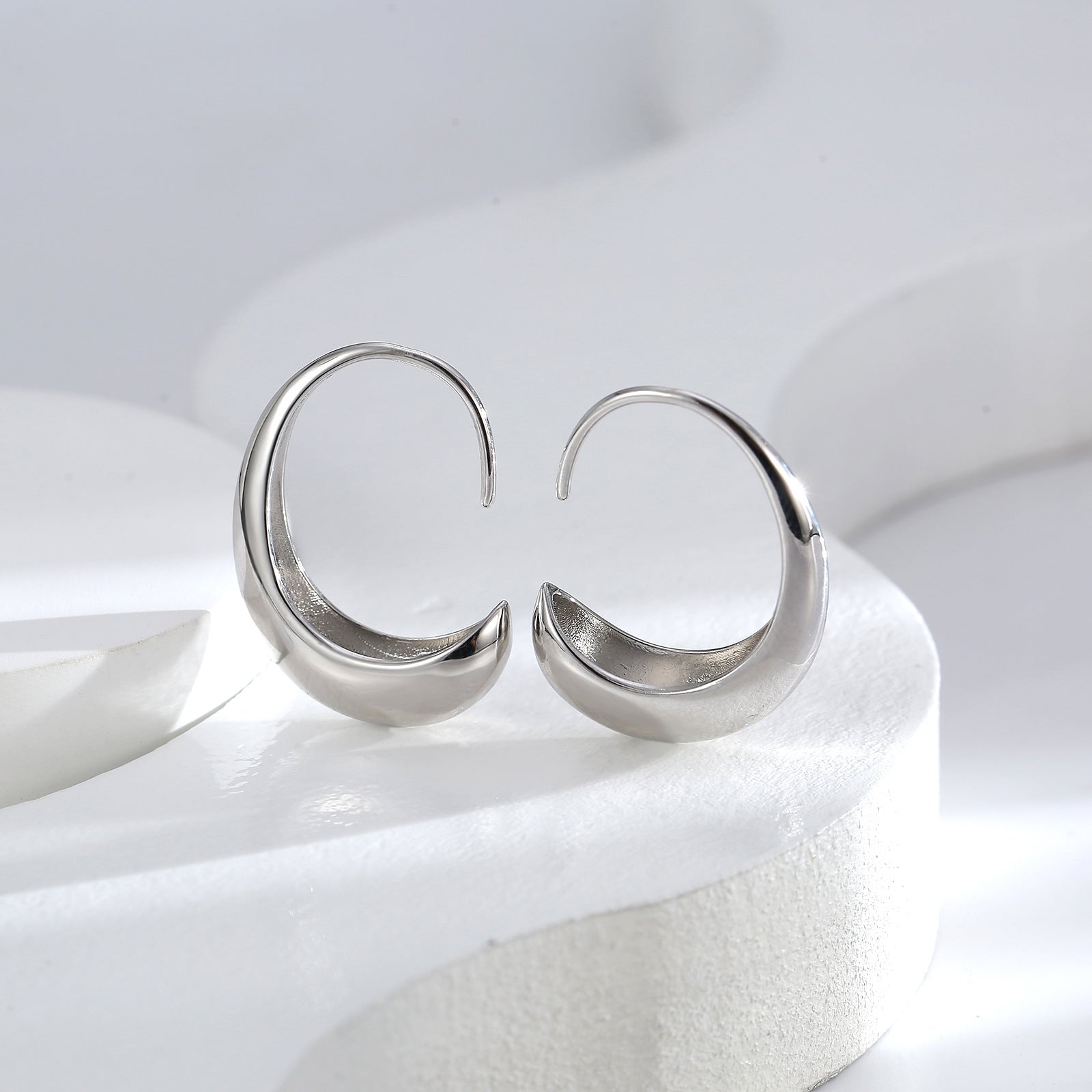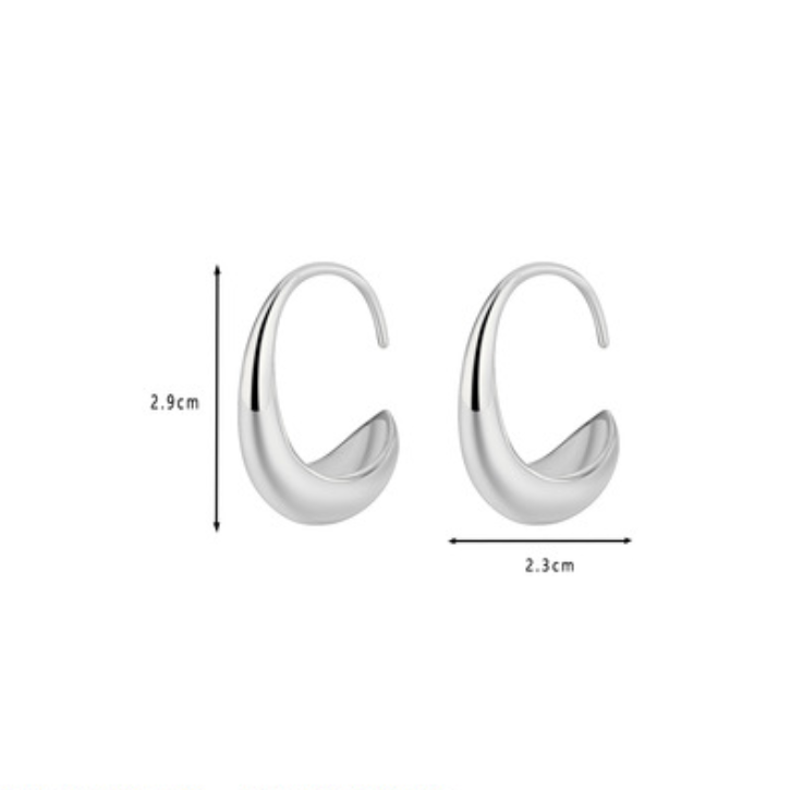 These earrings feature a sleek and contemporary design in the form of a C-shaped curve. The clean lines and smooth curves of the C-shape create a sense of modern sophistication.