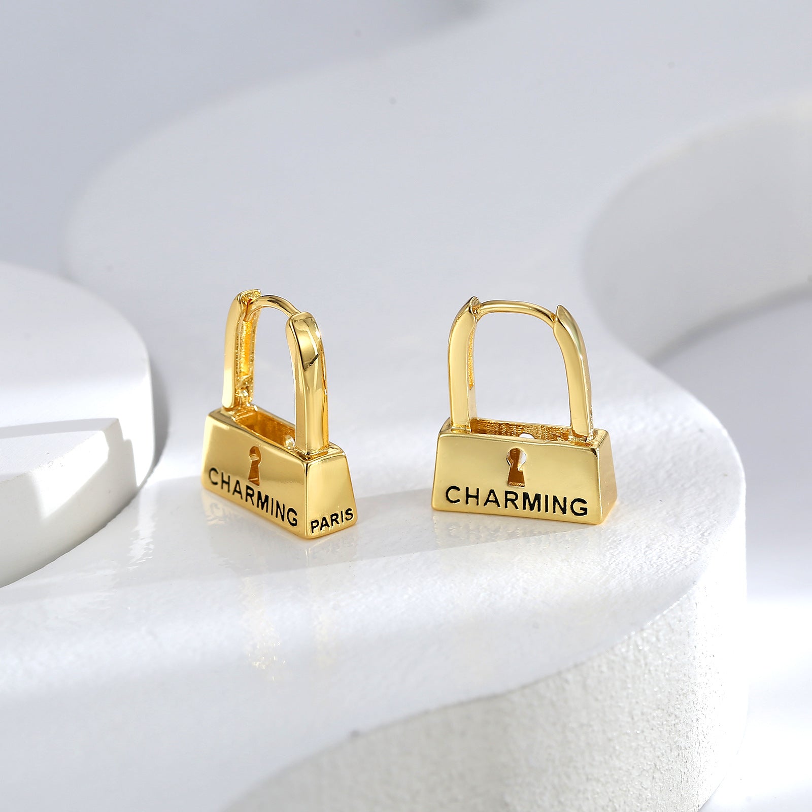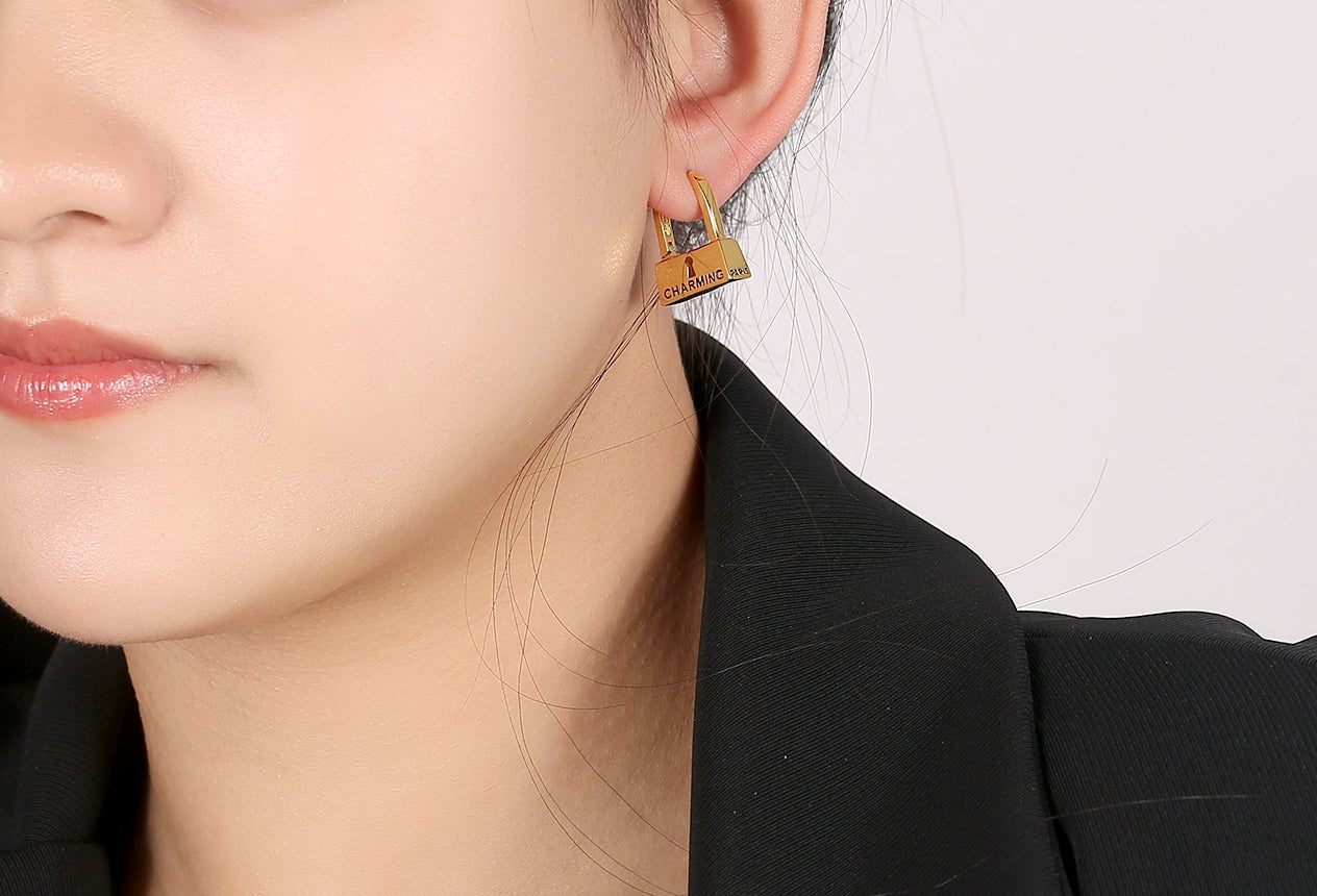 Creative Lock Gold Hoops Earrings For Women Trendy
