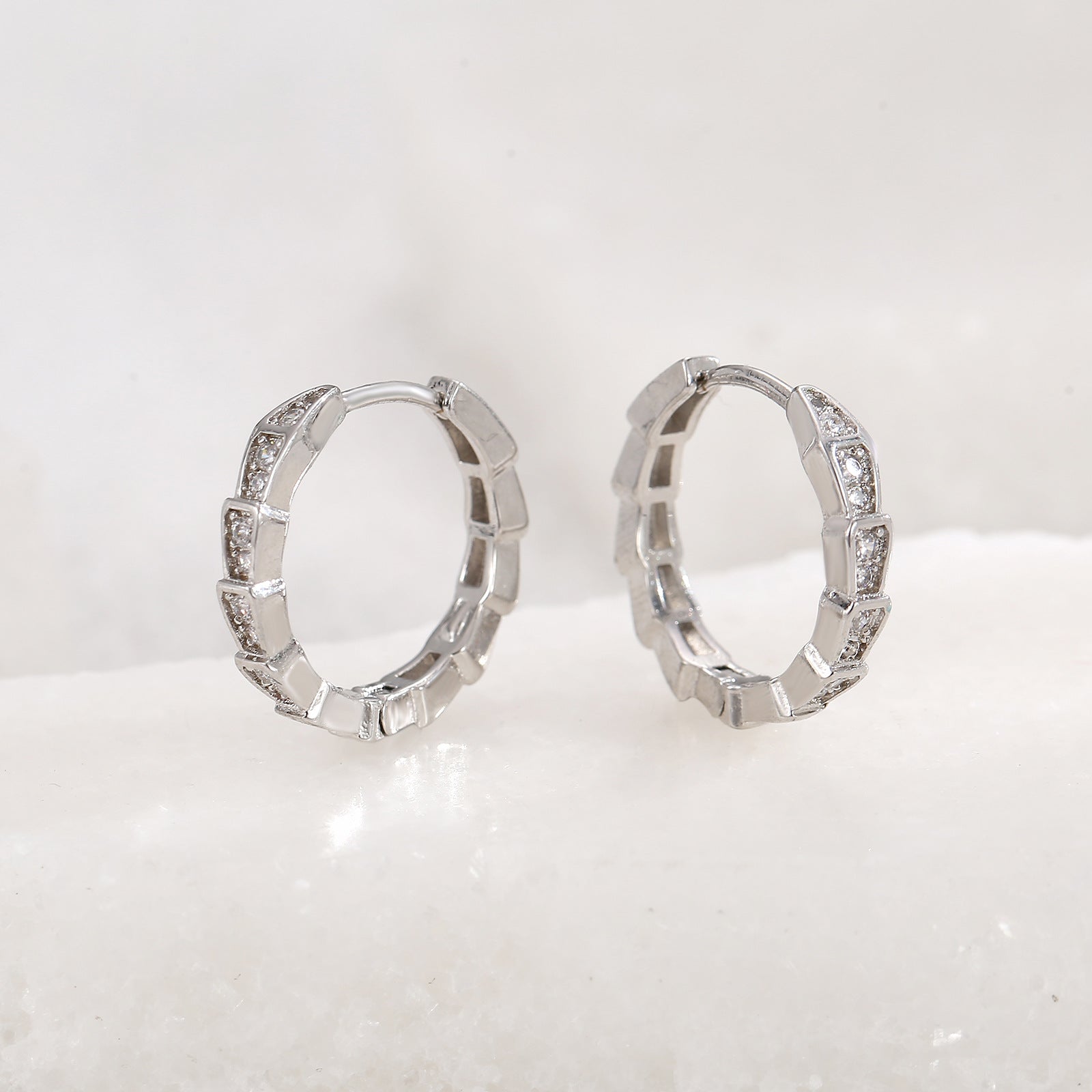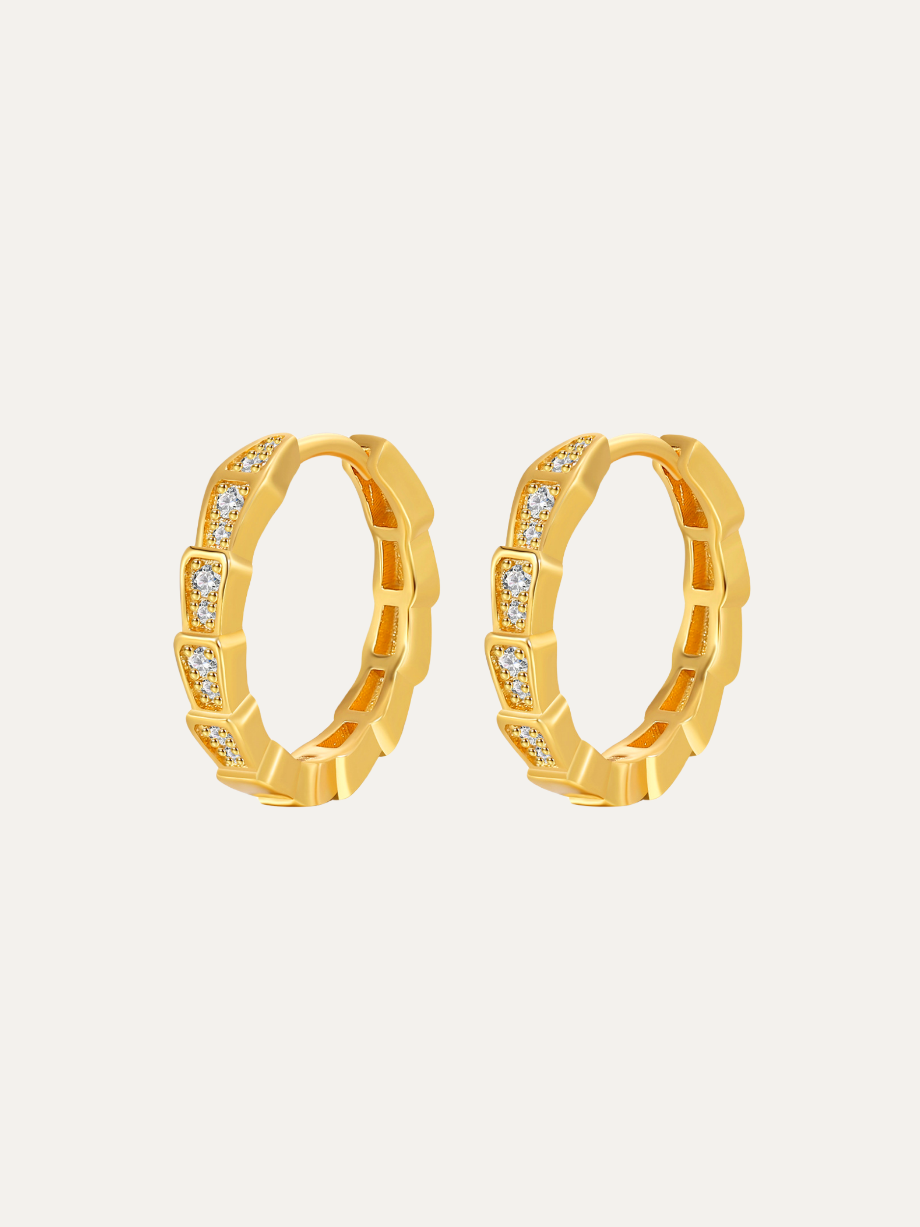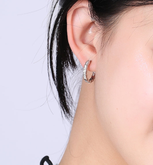 A snake-shaped diamond hoop earring is a stunning and glamorous accessory that can add a touch of elegance to any outfit. These earrings feature a circular hoop design that is shaped like a snake, with diamonds set along the length of the snake's body. The snake shape creates an interesting and edgy look that is both bold and sophisticated, while the diamonds add a touch of glamour and luxury.