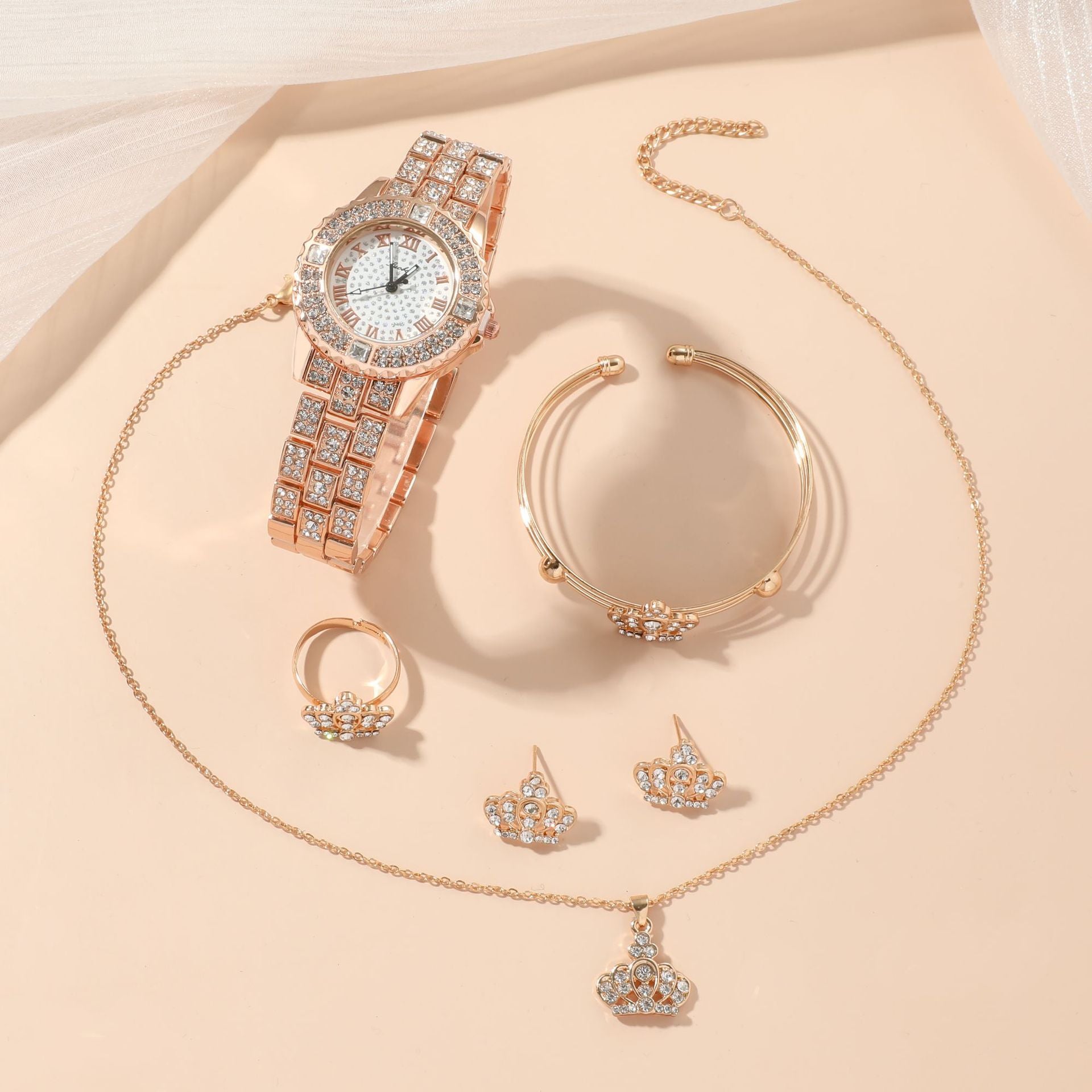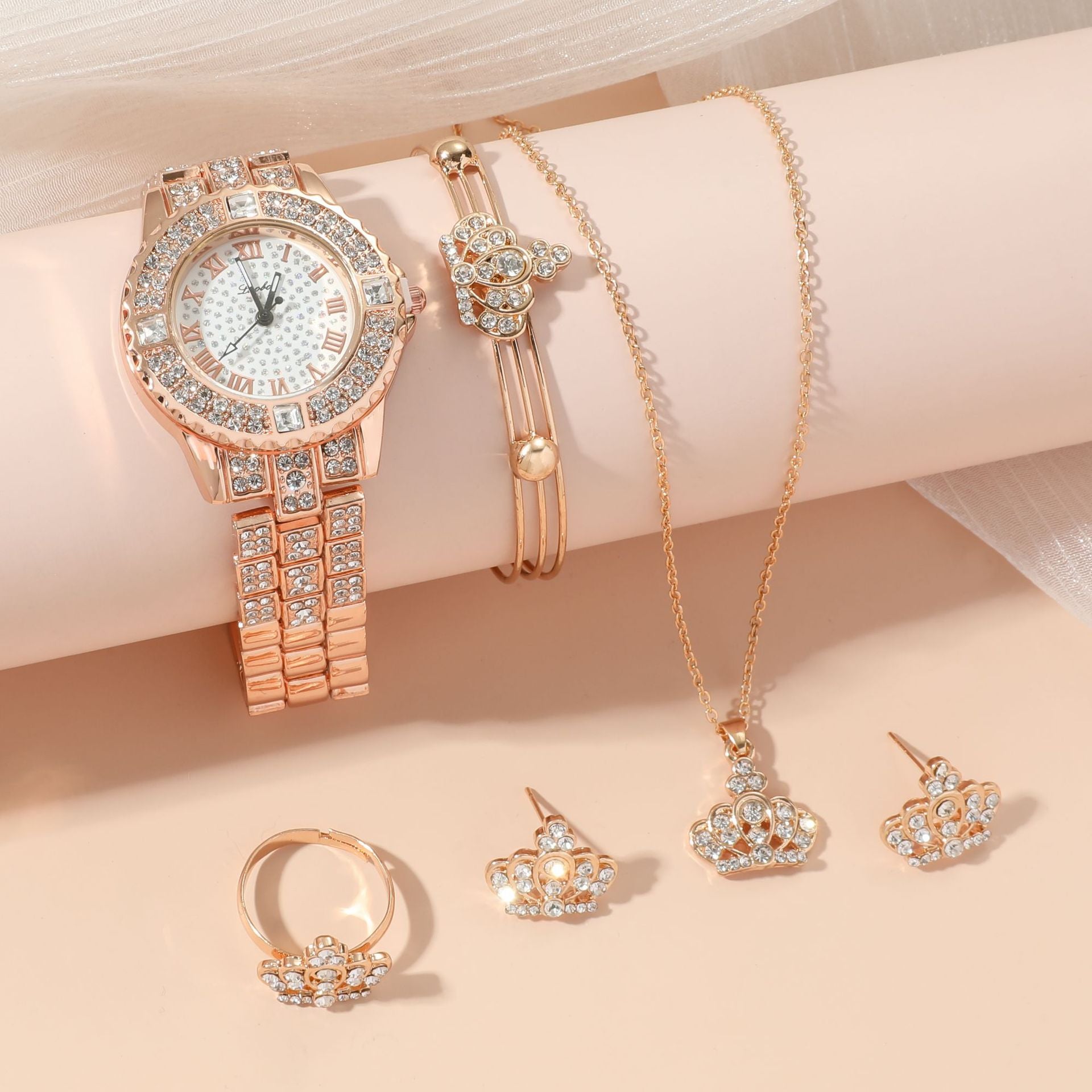 Diamond-studded Gypsophila Women's Steel Band Quartz Watch Set 5pcs/set Gifts For Women