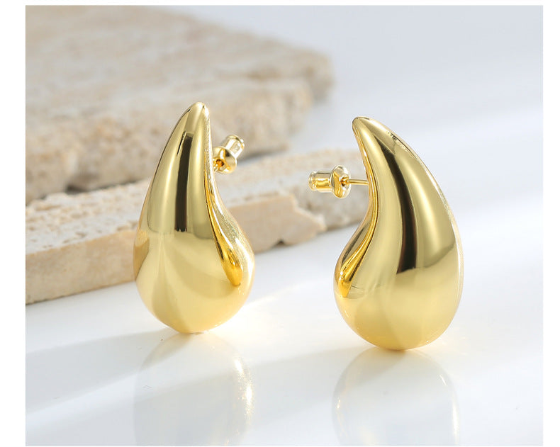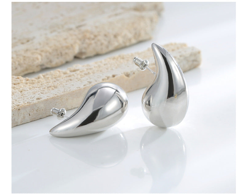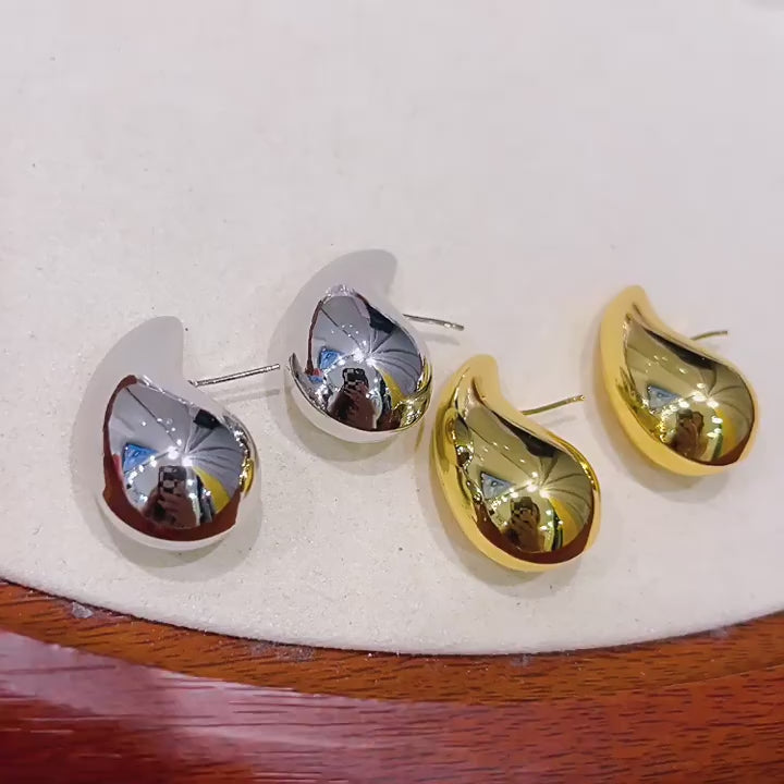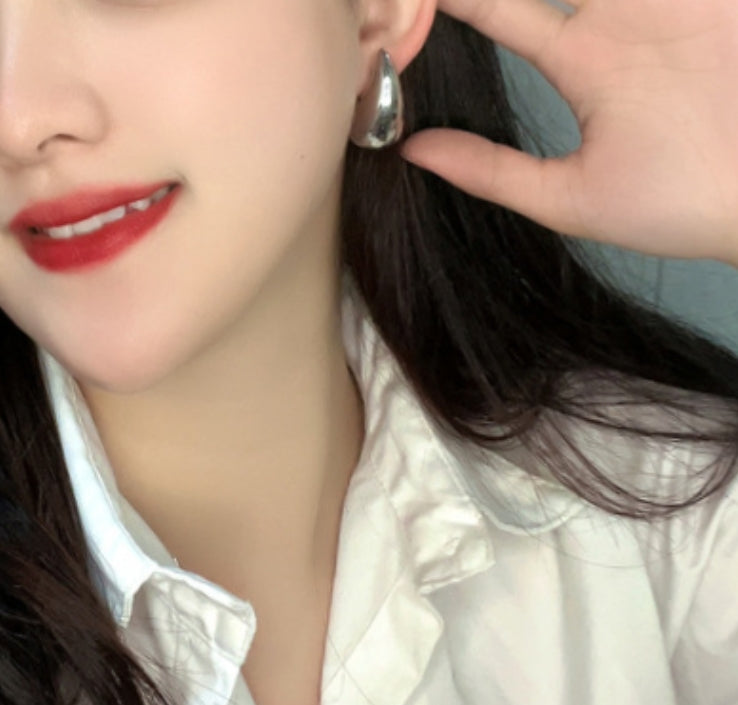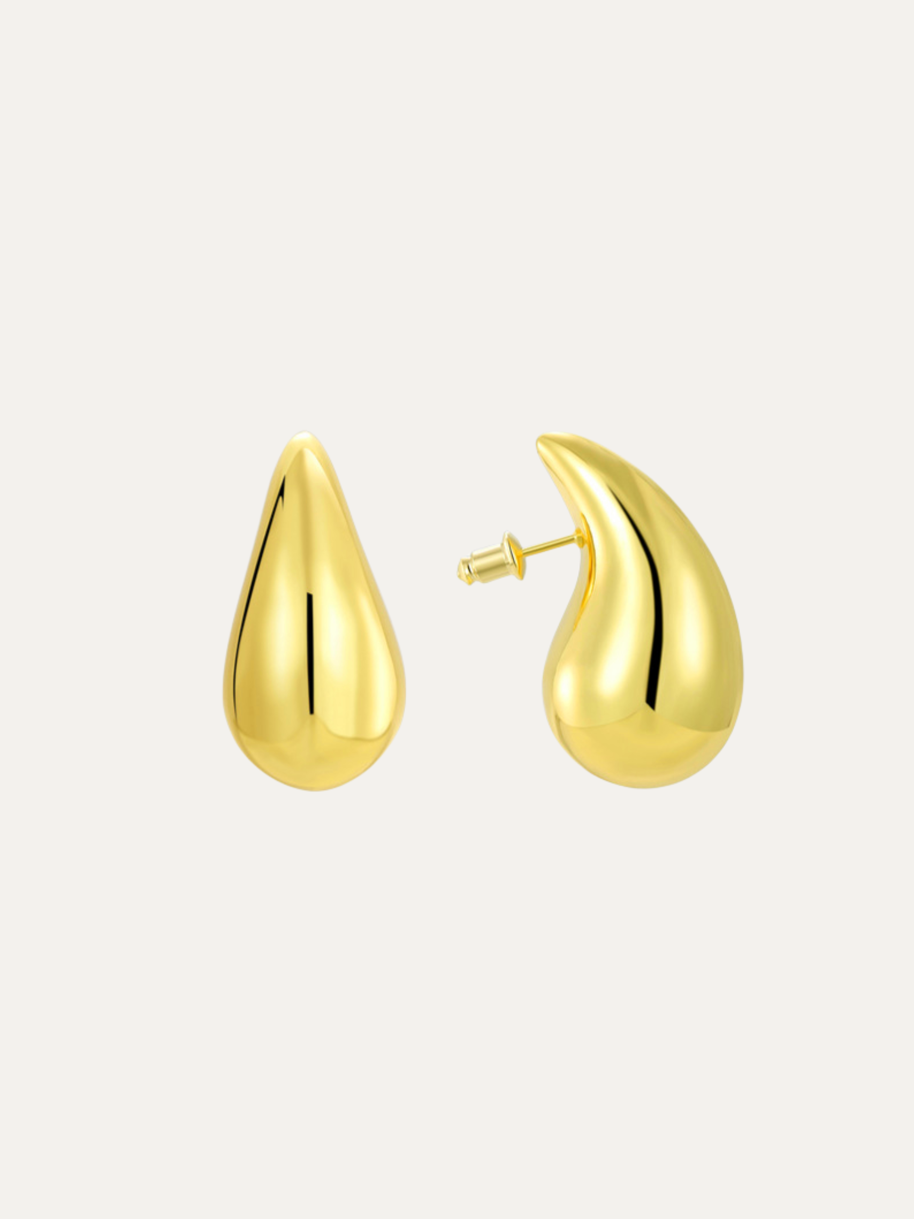 These earrings feature a teardrop-shaped design that hangs delicately from the earlobe, creating a graceful and feminine look.