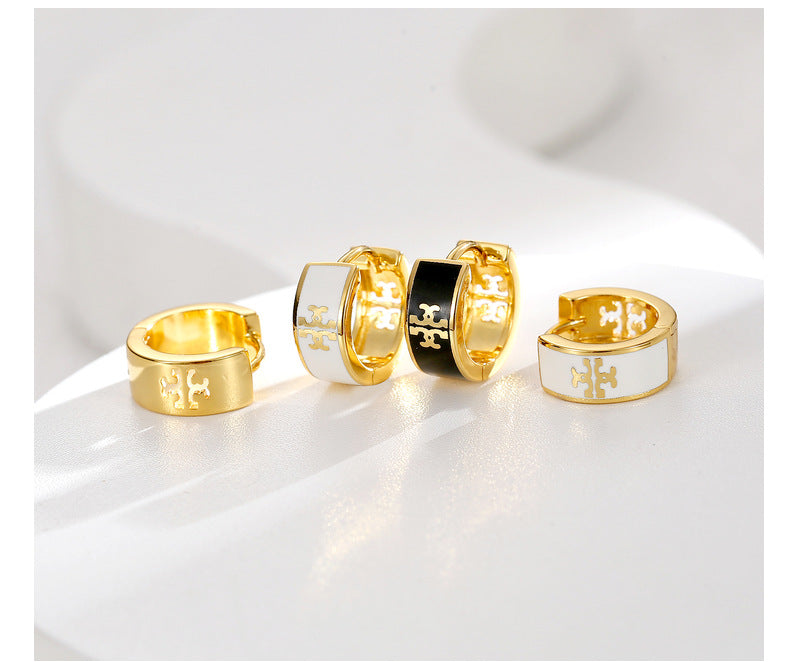 Enamel Gold Hoops Earrings for Women With A Retro And High-end Feel