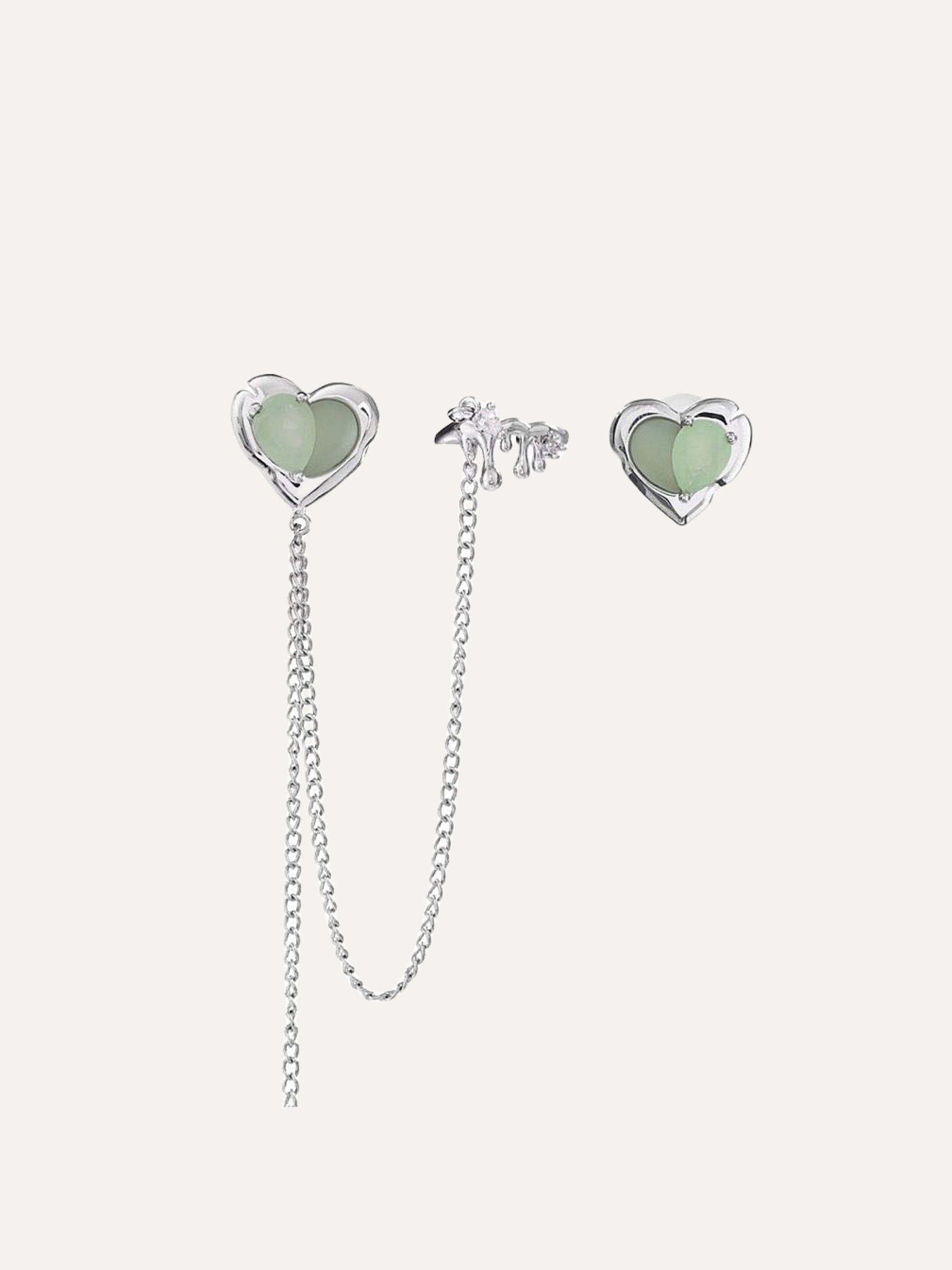 Green Grape Love Asymmetric Versatile Chain Silver Heart Earrings For Women