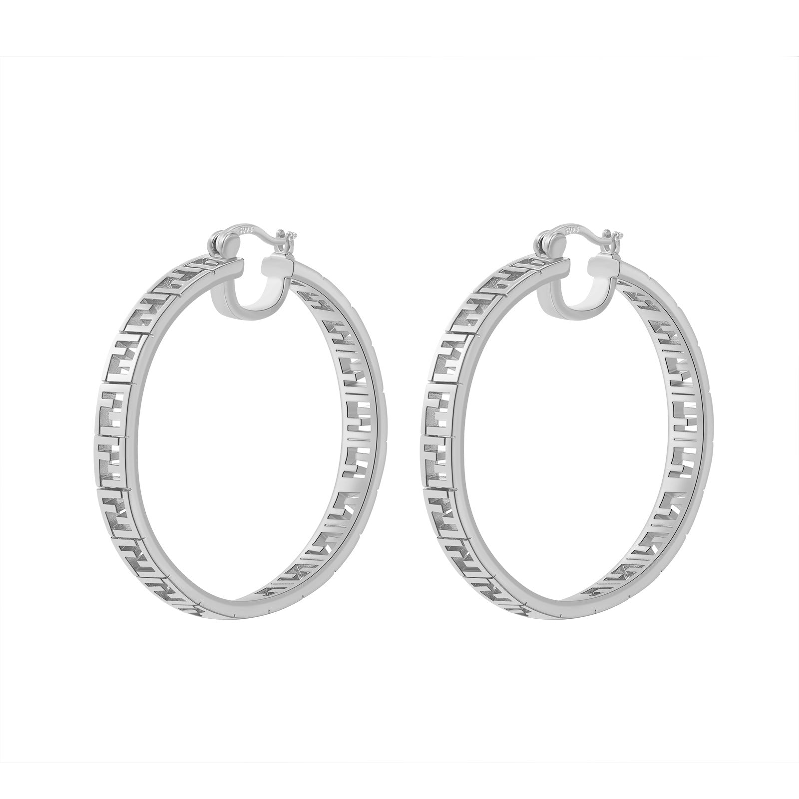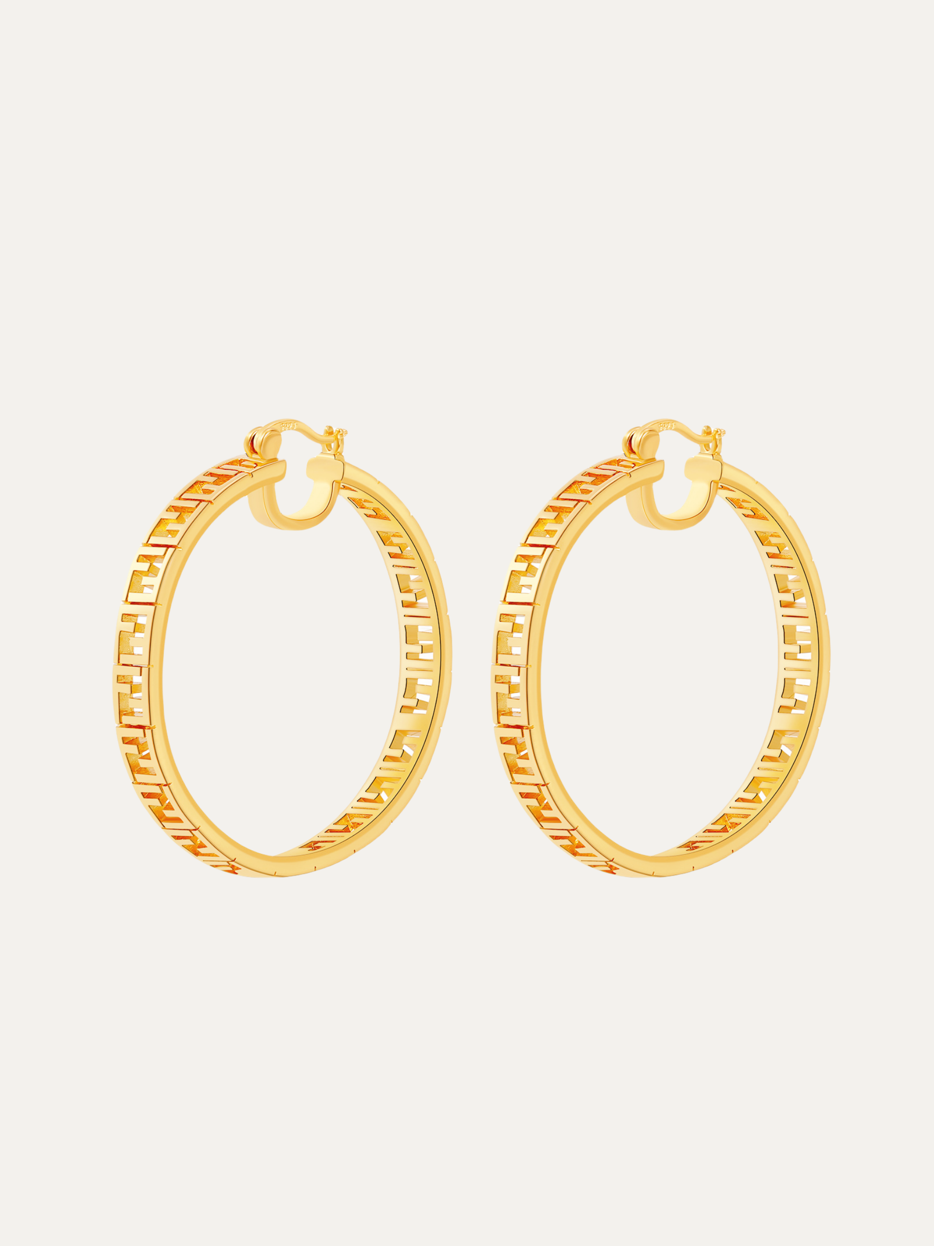F-shaped and inverted F-shaped cutouts create a stunning and unique large circular hoop earring design. These earrings feature a circular hoop shape with alternating F-shaped and inverted F-shaped cutouts. The cutouts create a beautiful and intricate pattern that adds texture and depth to the earrings. The large size of the earrings makes them a bold and statement-making accessory that can add a touch of personality and edginess to any outfit.