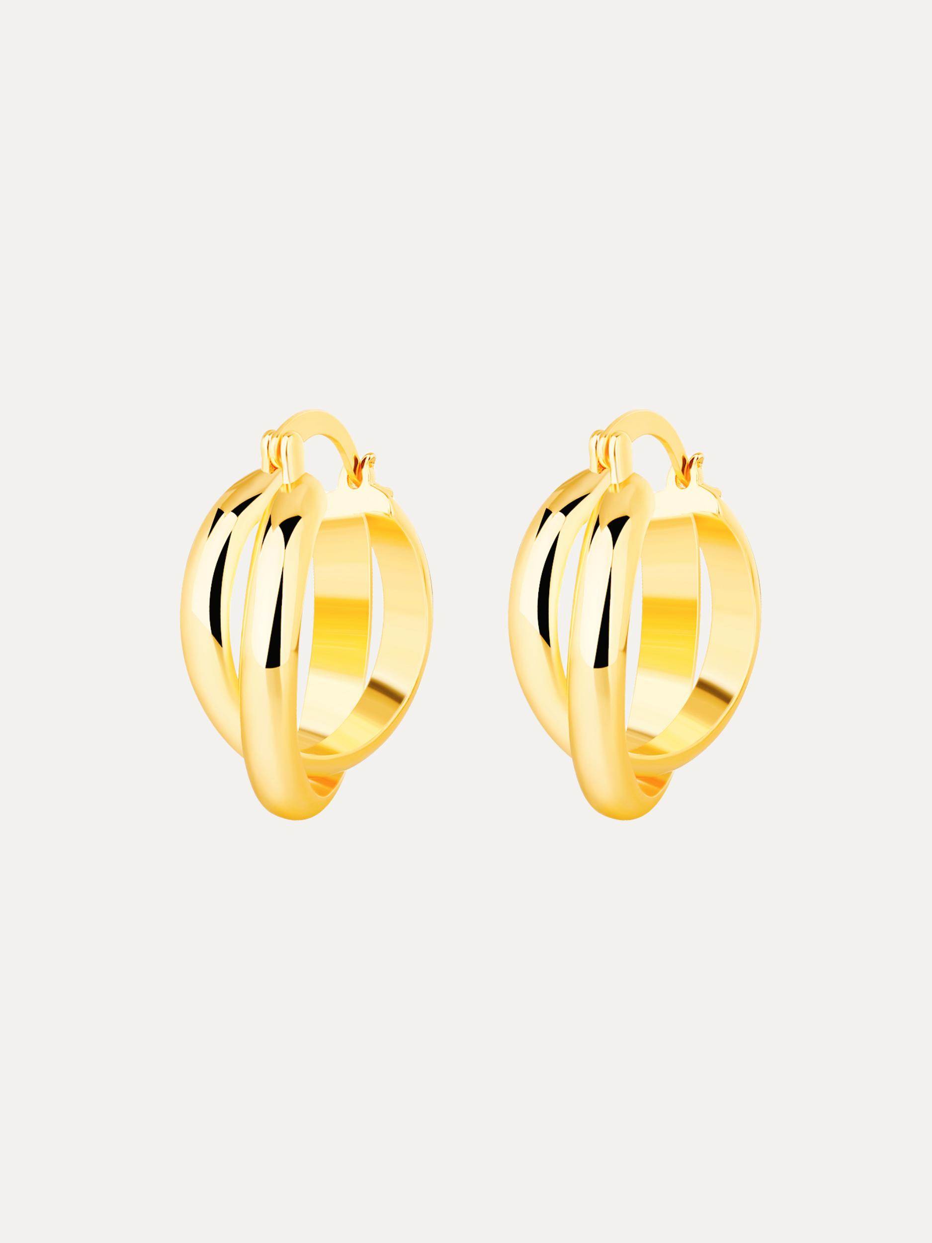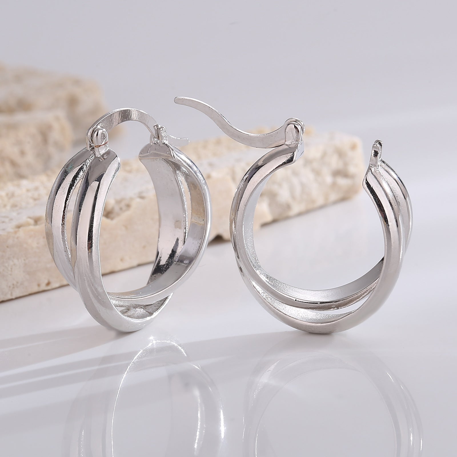 A double loop crossover earring is a unique and stylish accessory that can add a touch of edginess to any outfit. These earrings feature two circular hoops that are intertwined and cross over each other. The double loop design creates an interesting and eye-catching look that is both bold and sophisticated.