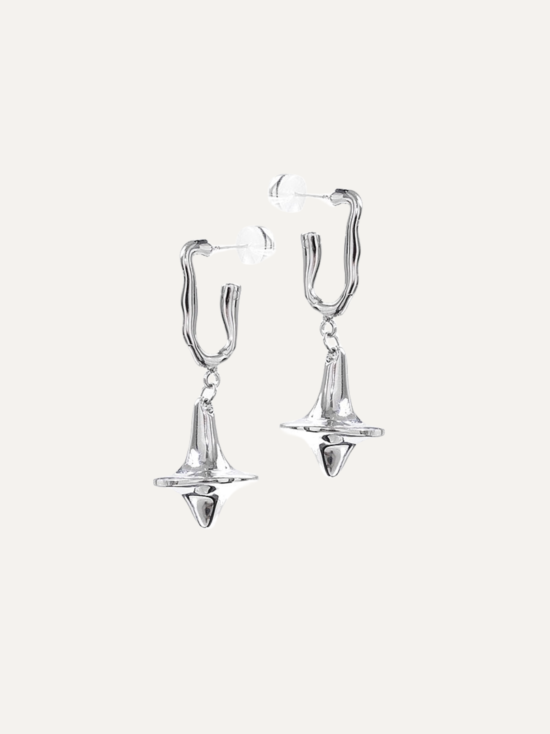 Drawing inspiration from mechanical gyroscopes, these earrings feature a unique design that showcases a sense of movement and dynamism. Crafted from high-quality silver, the earrings are sleek and polished, adding a modern and edgy touch to any ensemble.