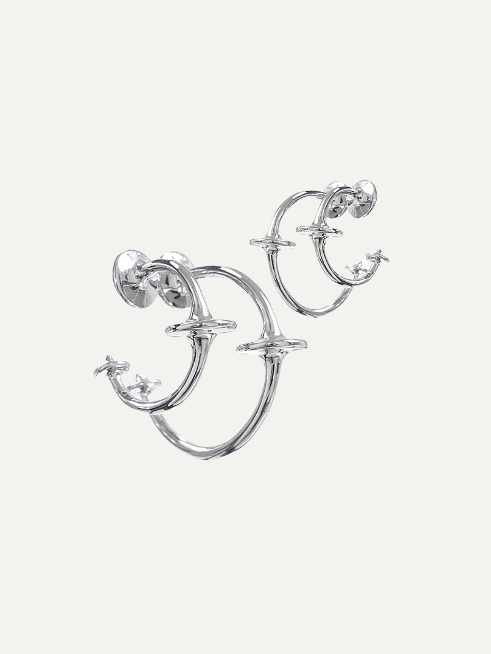 The combination of curves and lines adds a dynamic element to the design, evoking a sense of motion and energy.They make a bold fashion statement, perfect for those who appreciate unconventional and artistic jewelry.