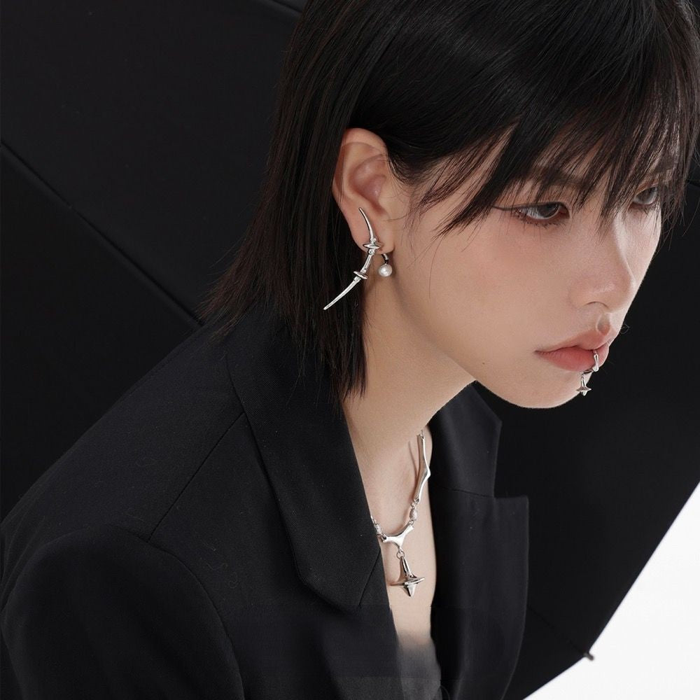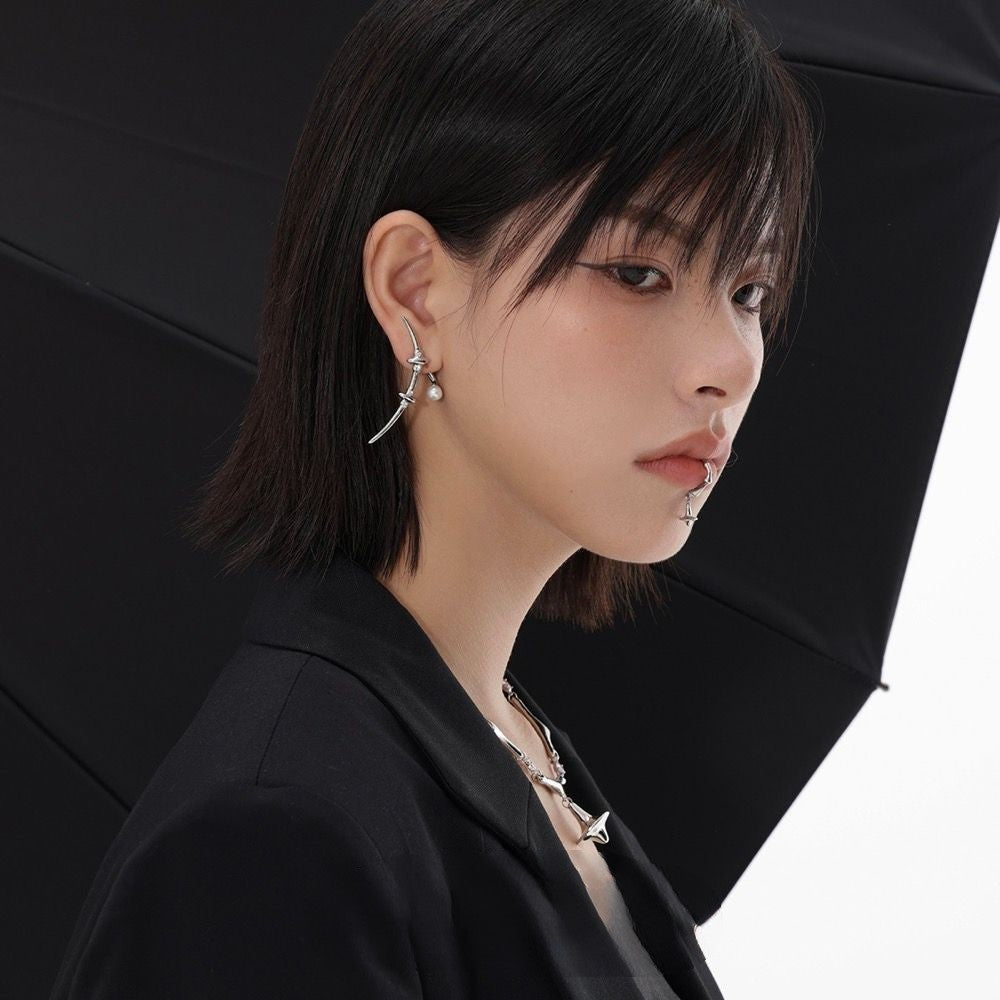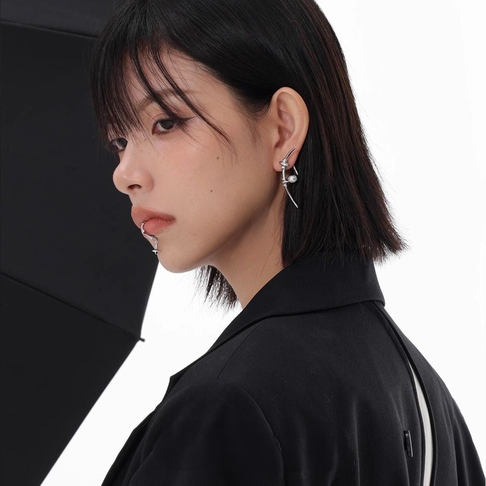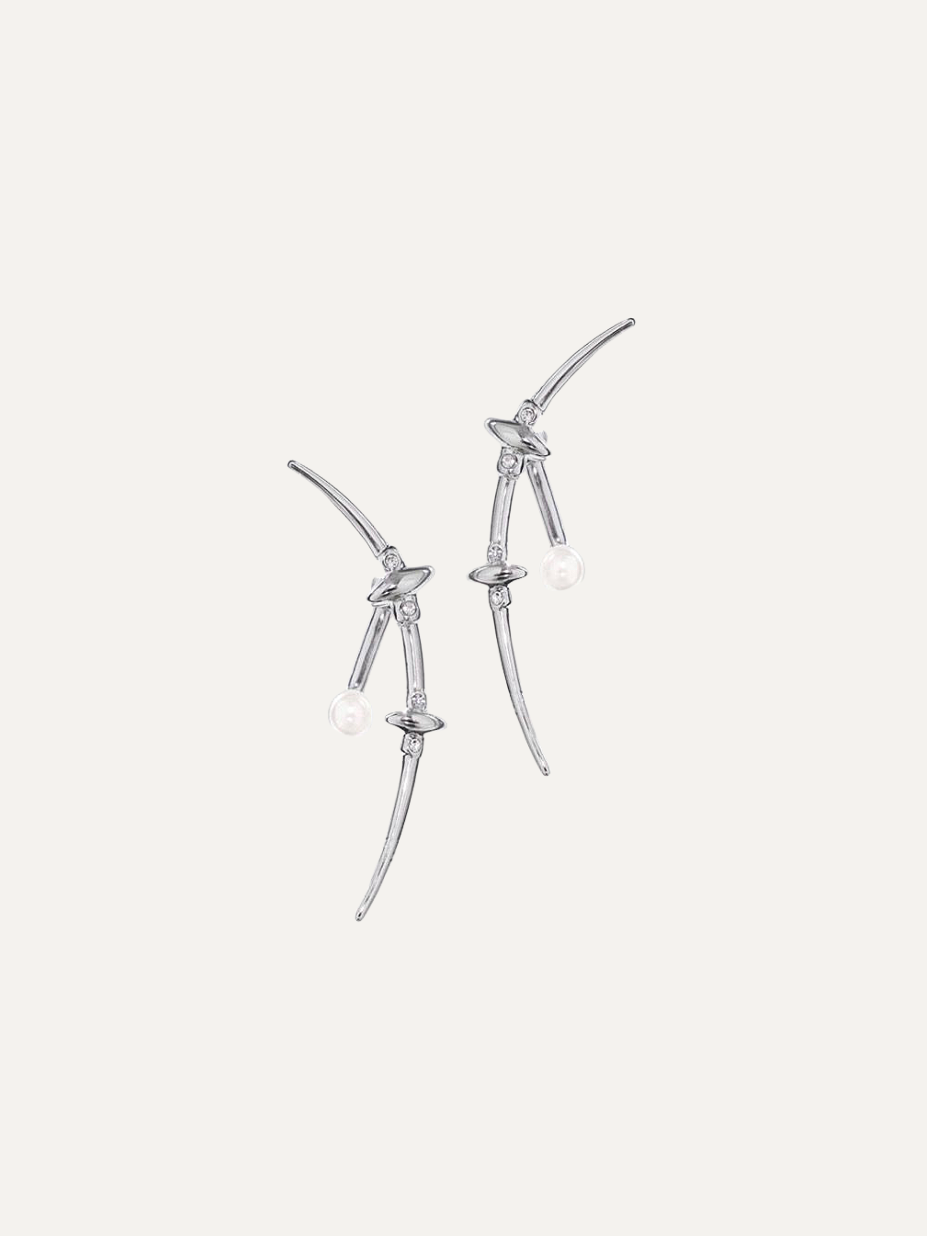 Mechanical Gyro Series Pearl Silver Earrings for Women