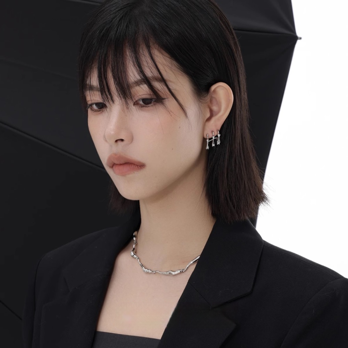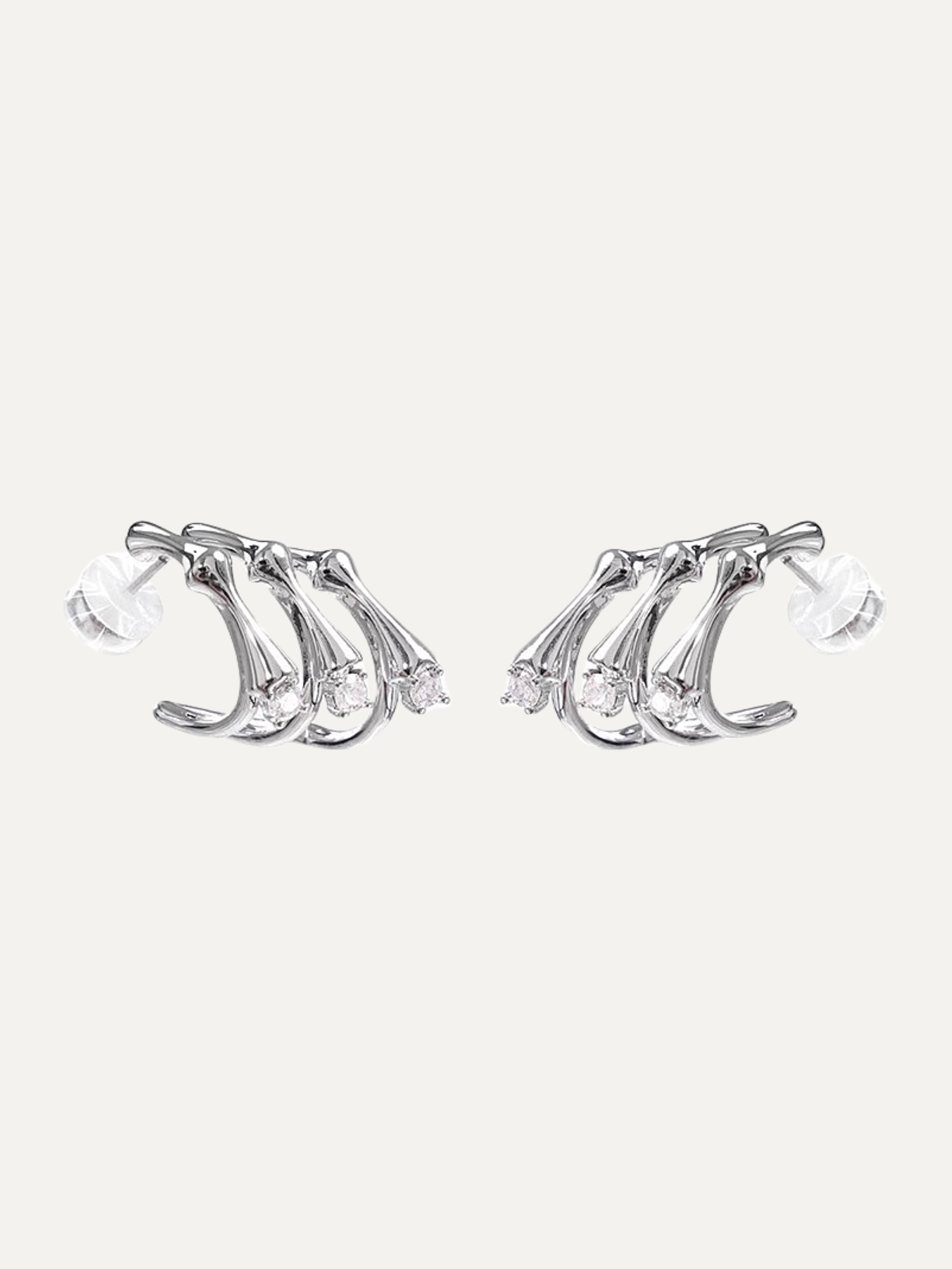 A set of linked bone-shaped diamond stud earrings is a unique and eye-catching accessory that adds a touch of edgy elegance to any look.