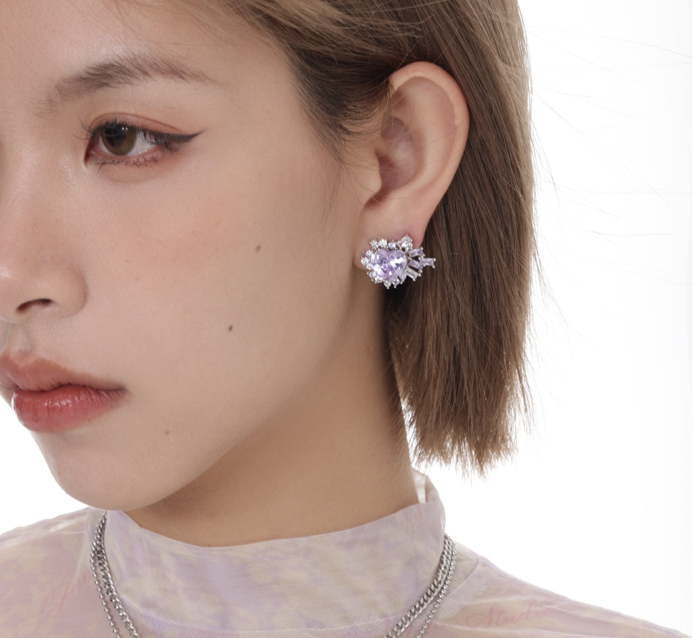 Mysterious Series Romantic Purple Silver Hypoallergenic Heart Earrings For Women