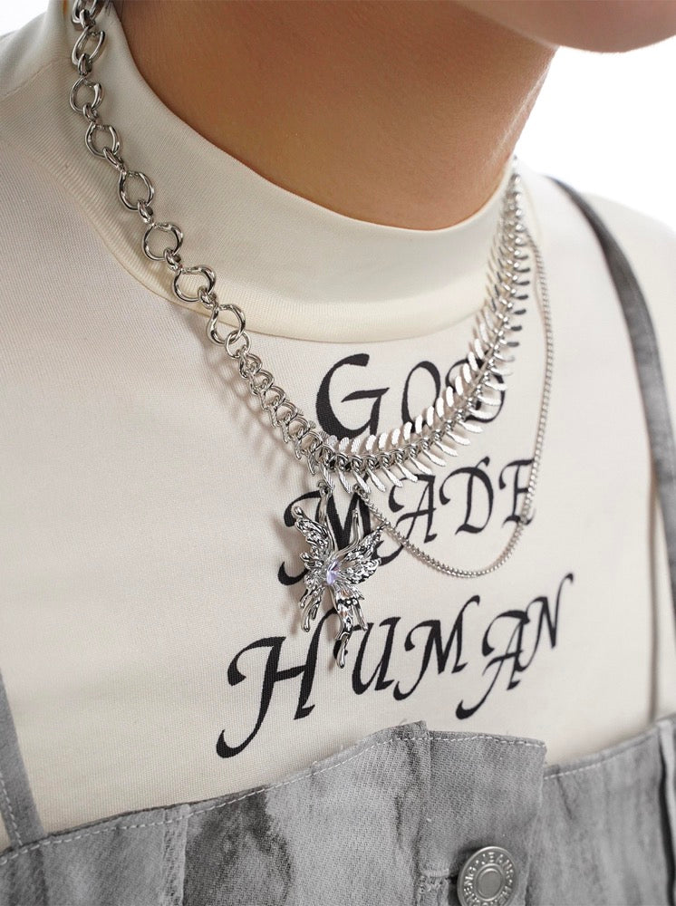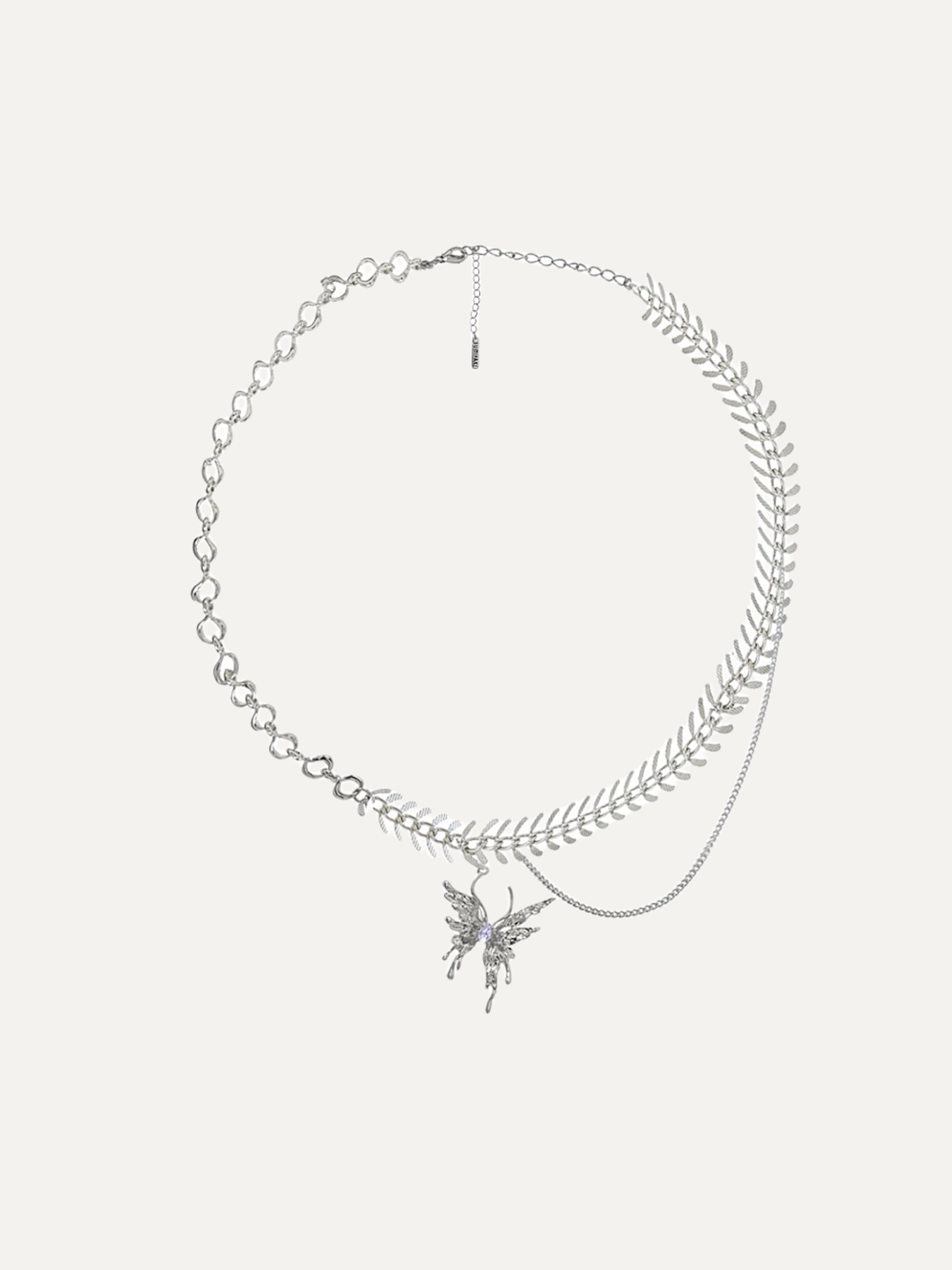 This necklace features a delicate collarbone chain adorned with a captivating butterfly pendant.