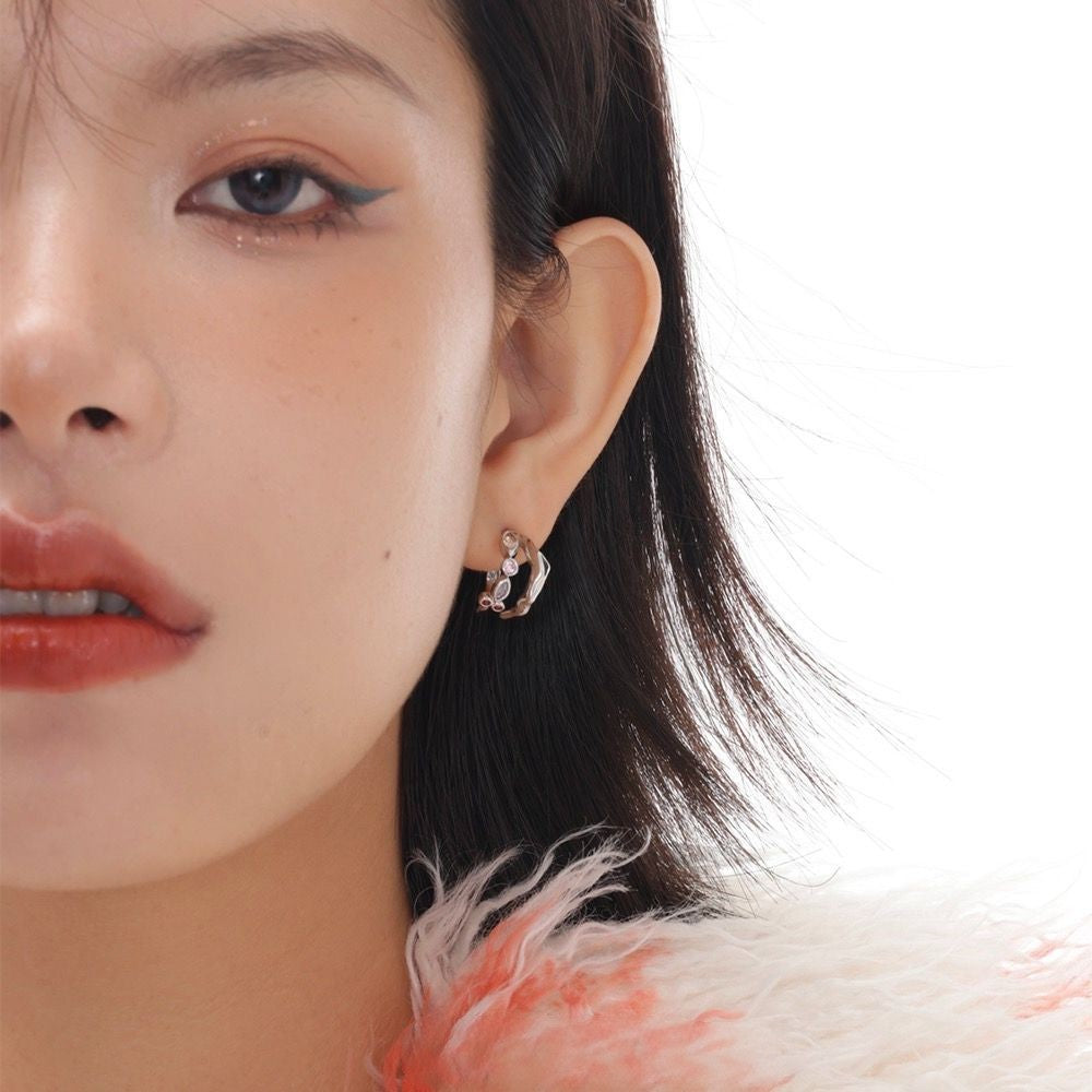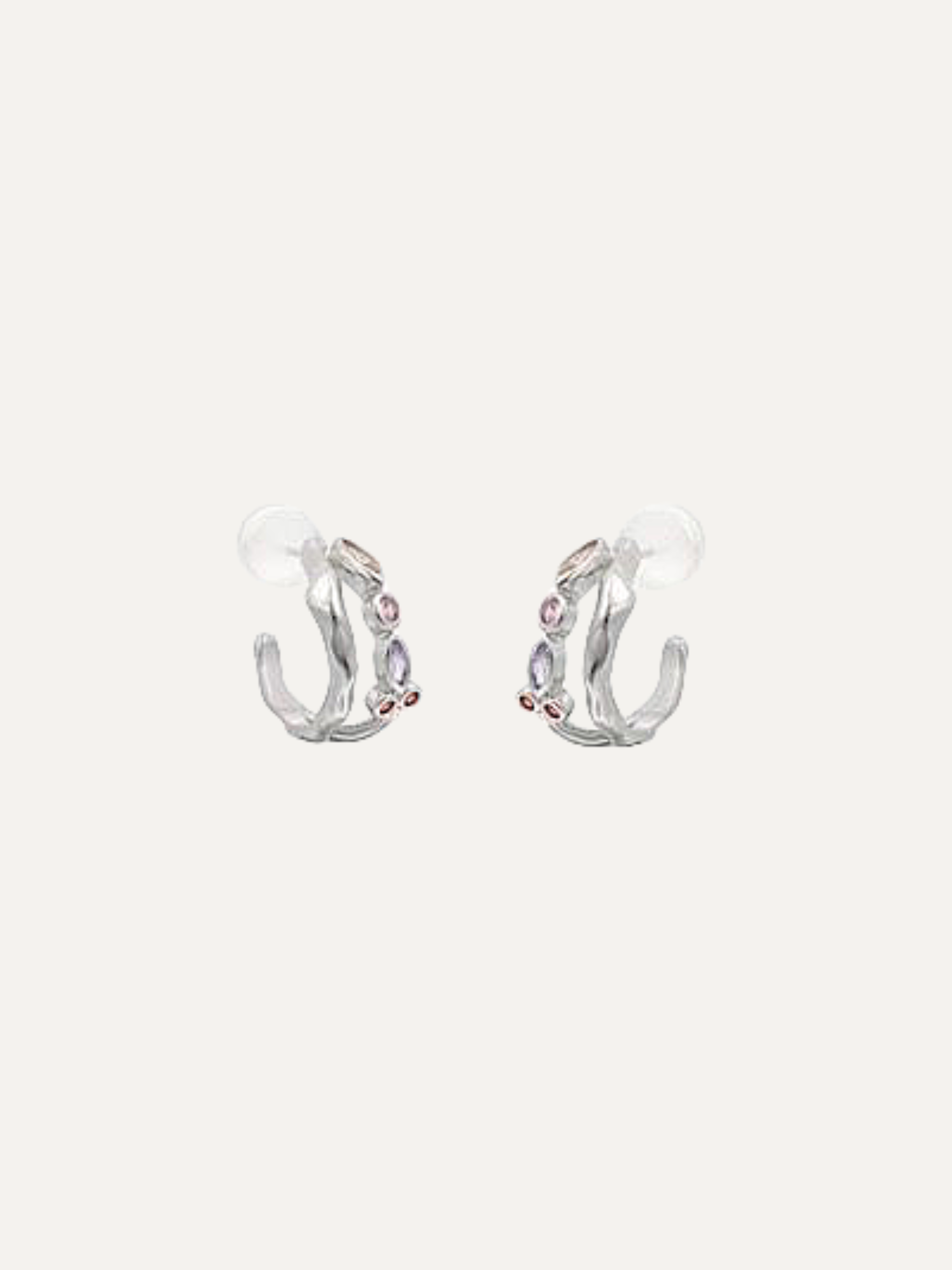 Secret Realm Colorful Double Layer Zircon Silver Earrings for Women
