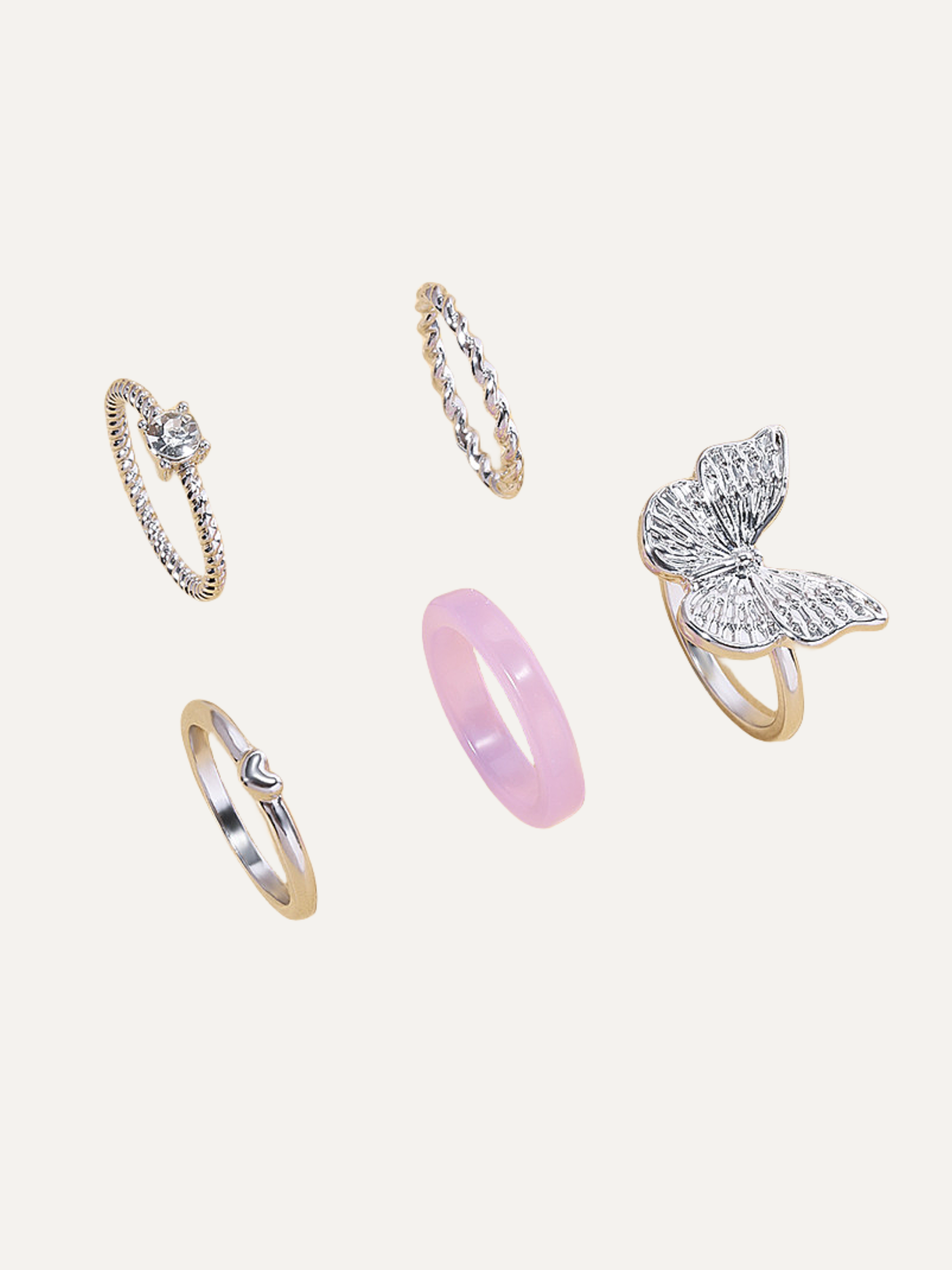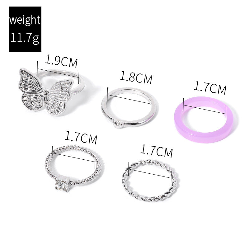 Silver Plated Butterfly 5-Piece Ring Sets for Women