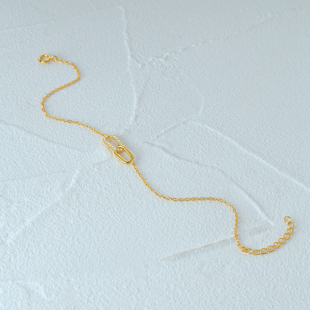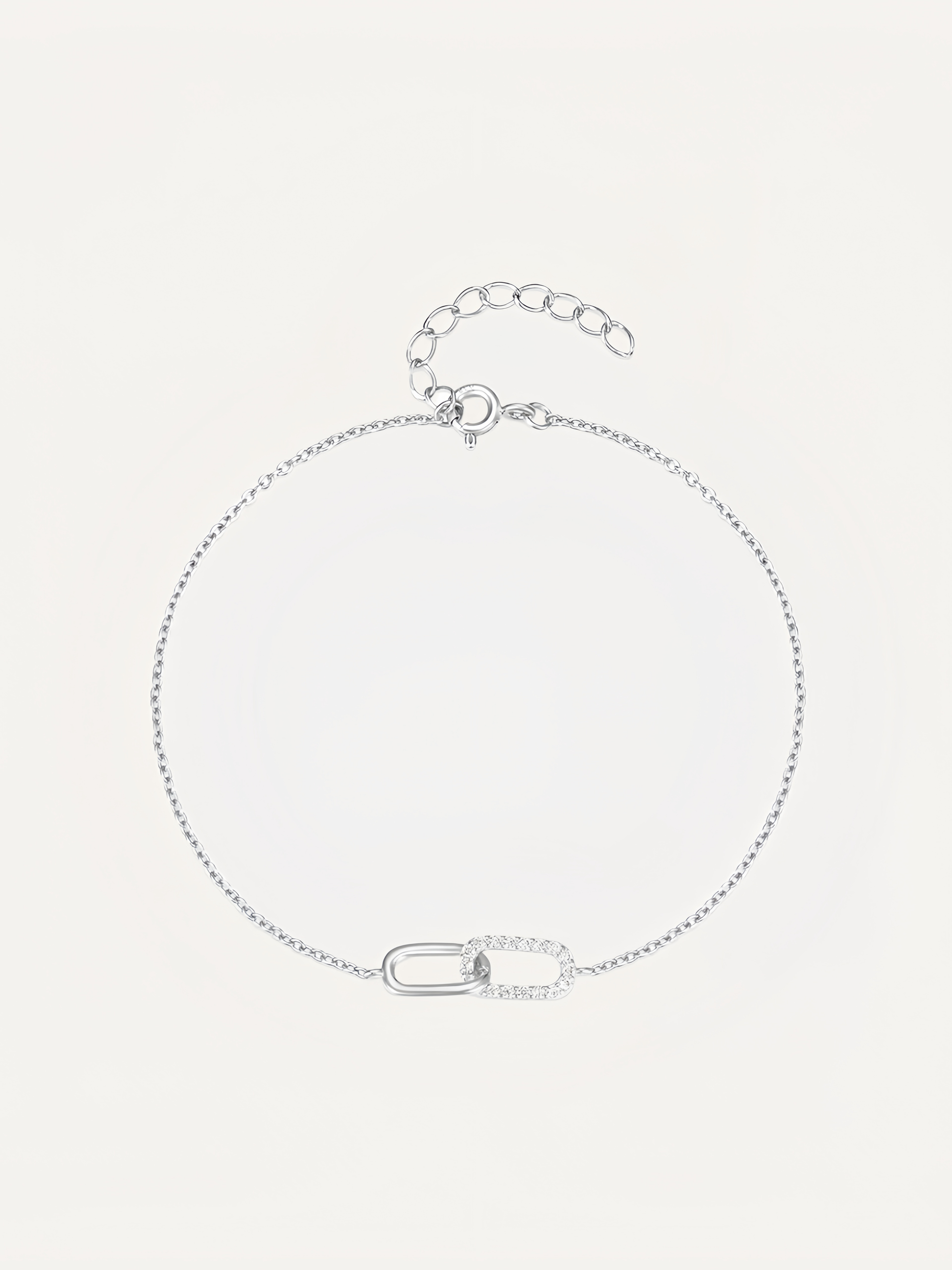 Sterling Silver Double-clasp Cross Bracelet with Zircon