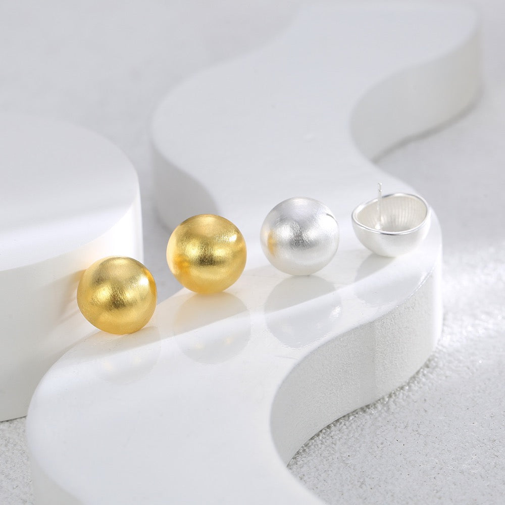 Sterling Silver Needle Frosted Ball Earrings for Women