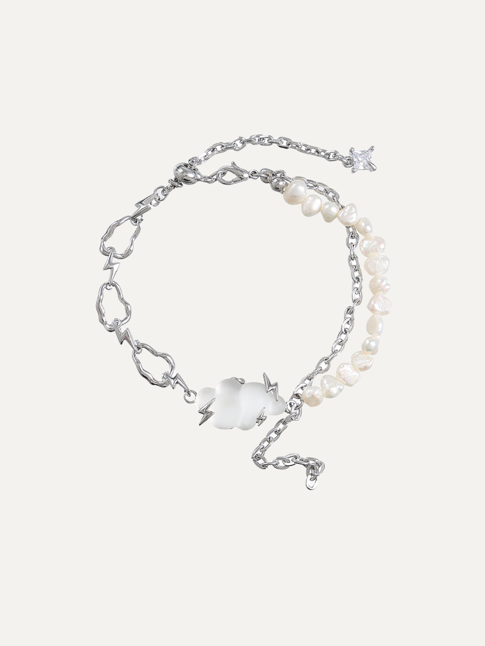 Wearing this cloud and pearl bracelet not only adds a touch of charm to your look but also serves as a reminder of tranquility and the beauty of nature. The combination of the cloud motif and the pearls creates a harmonious blend of elegance and whimsicality, making it a perfect accessory for both casual and formal occasions.