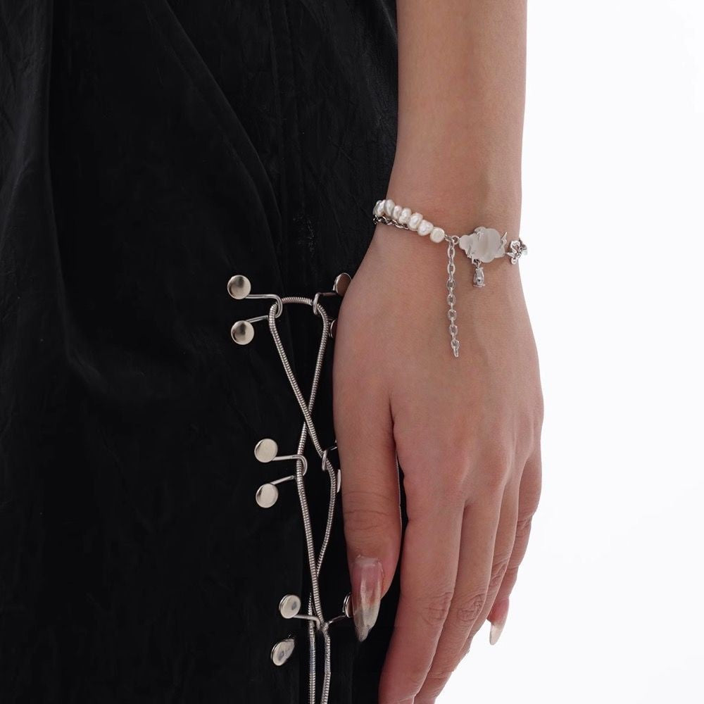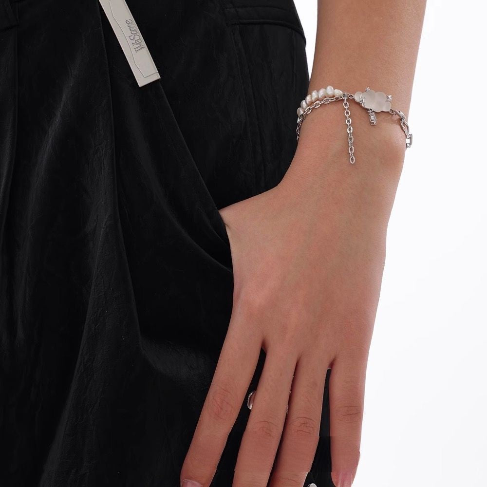 This pearl bracelet features a delightful cloud motif, adding a touch of whimsy and elegance to your wrist.