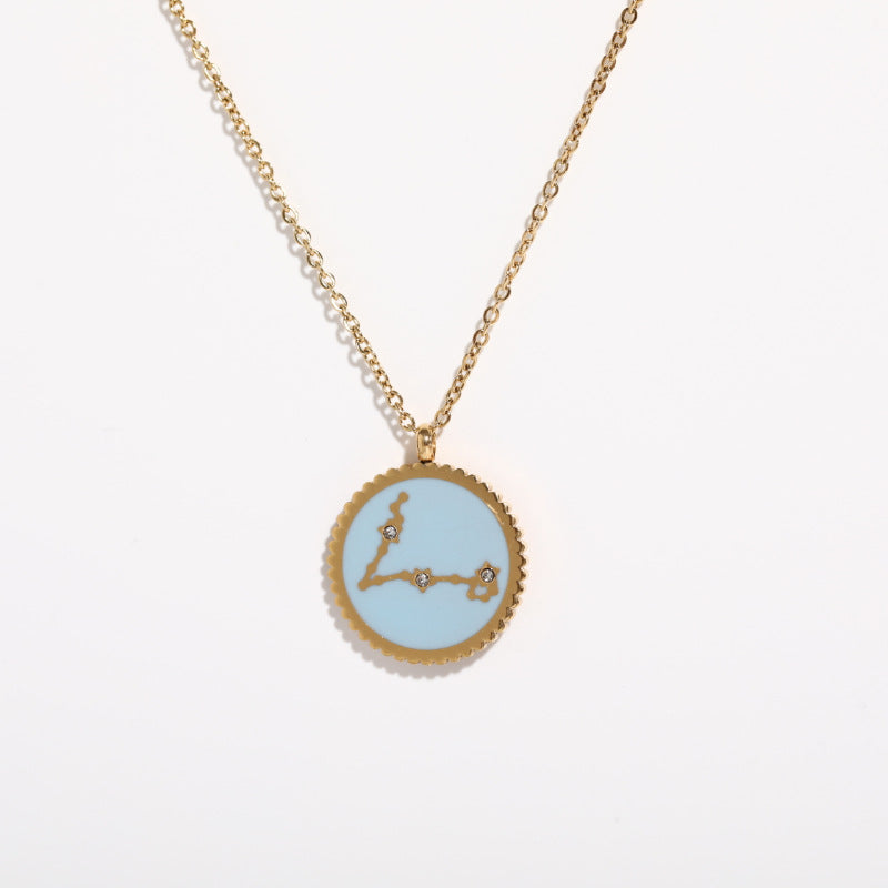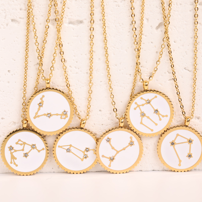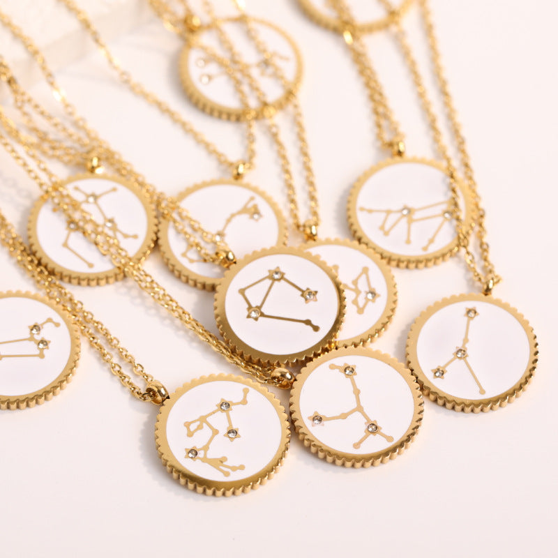 Twelve Constellation 12 Constellation Star Map Pendant Round Card Necklace