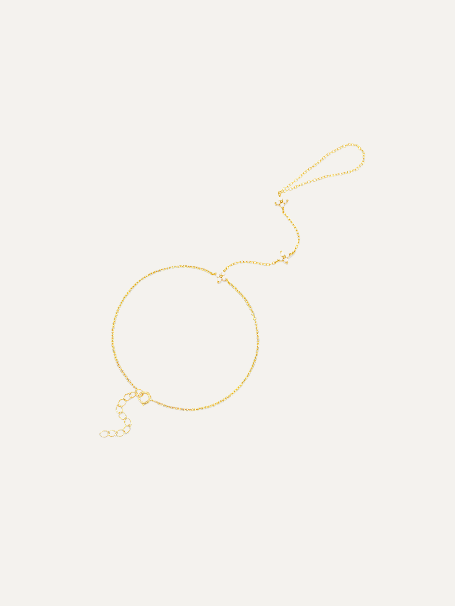 Women's diamond-studded four-leaf flower ring chain bracelet